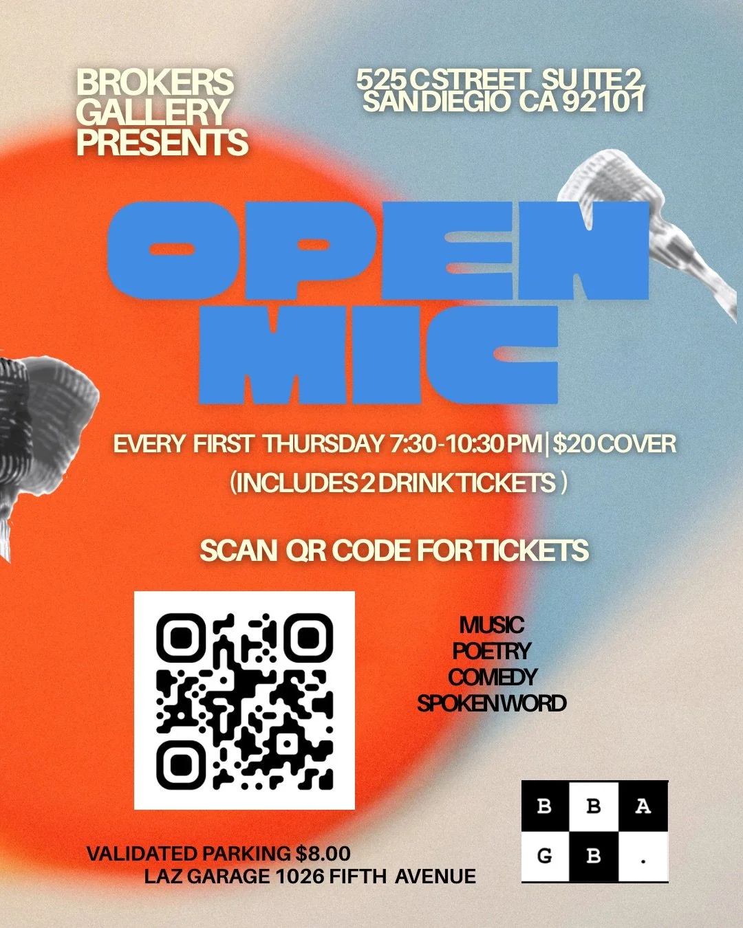 Open Mic Night is a monthly gathering at Brokers Gallery inviting poets, musicians, dancers, and performance artists to share work in an intimate, supportive gallery setting. Rooted in the gallery’s history as a community-driven arts space, the evening welcomes experimentation and creative exchange across disciplines.