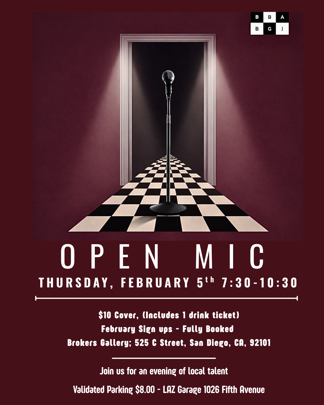 Open Mic Night is a monthly gathering at Brokers Gallery inviting poets, musicians, dancers, and performance artiststo share work in an intimate, supportive gallery setting. Rooted in the gallery’s history as a community-driven arts space, the evening encourages experimentation, dialogue, and creative exchange across disciplines. All voices and levels of experience are welcome, whether presenting new work or engaging as part of the audience.