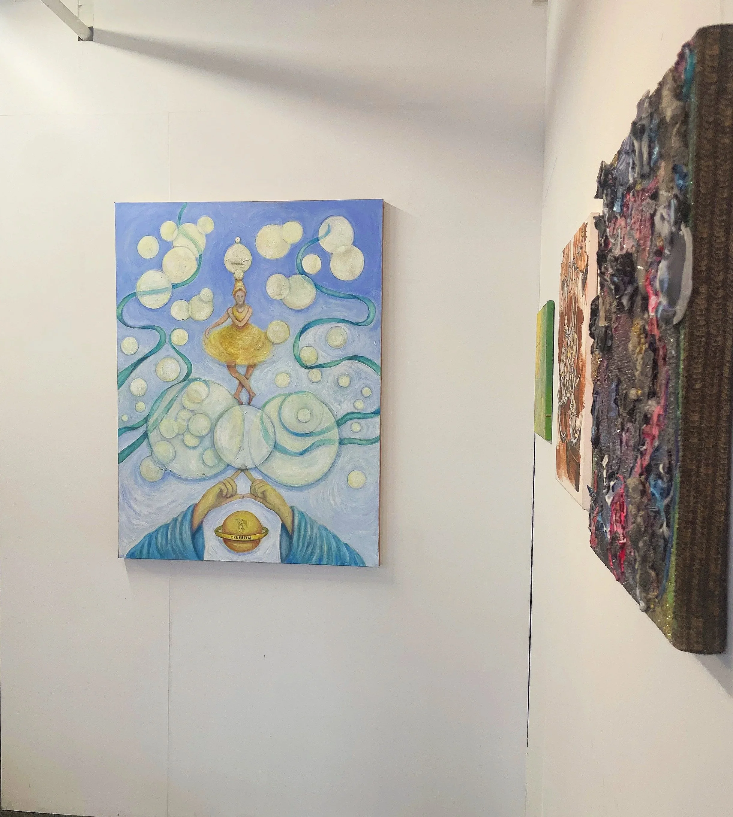 The exhibition explores the macrocosm and the microcosm within contemporary painting. The ten selected artists approach painting through subject matter that ranges from the cosmos to the back garden—moving from tactile works that evoke celestial bodies to figurative paintings that portray the self spiritually, mentally, and materially, grappling with reality and circumstance.