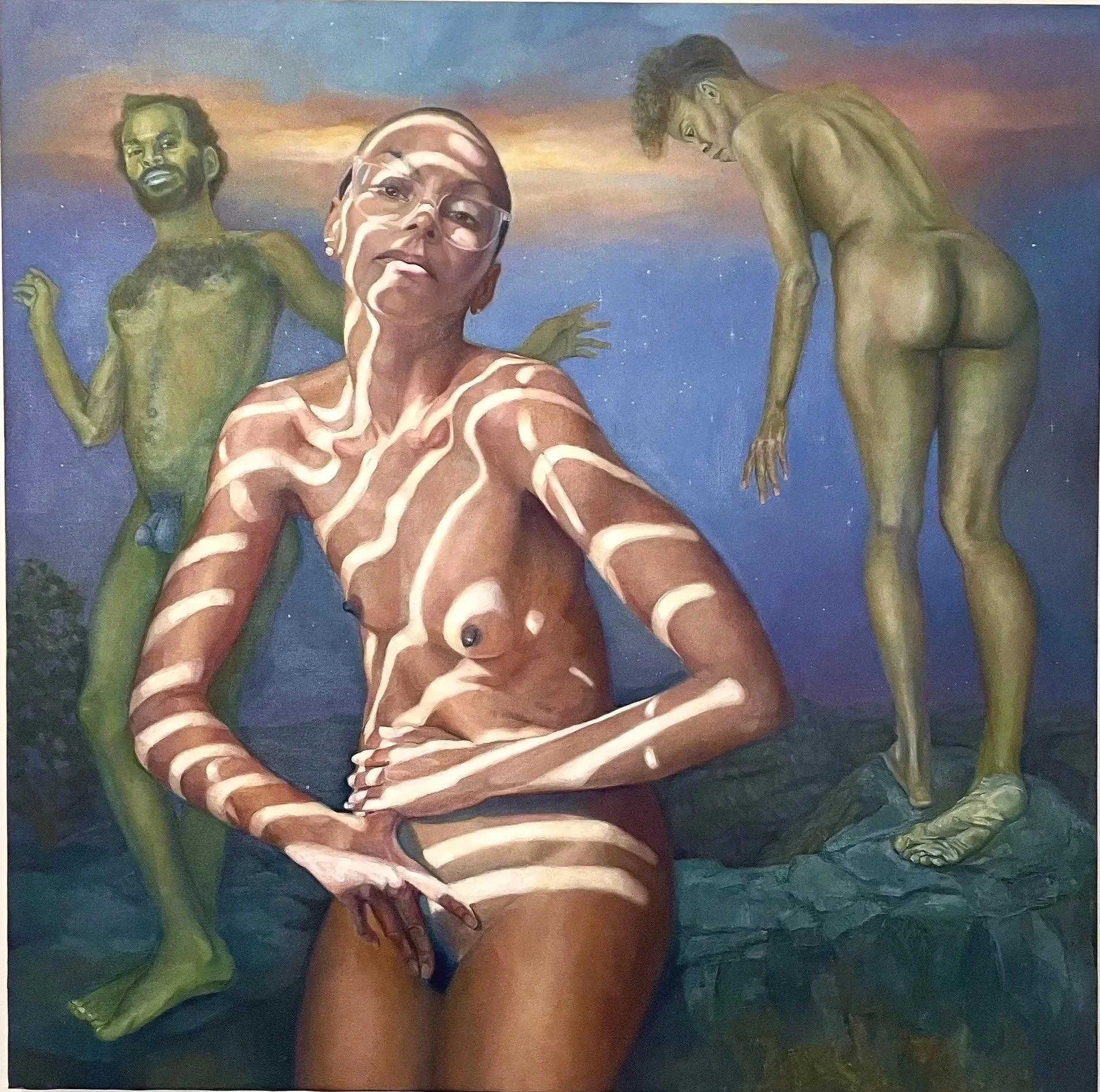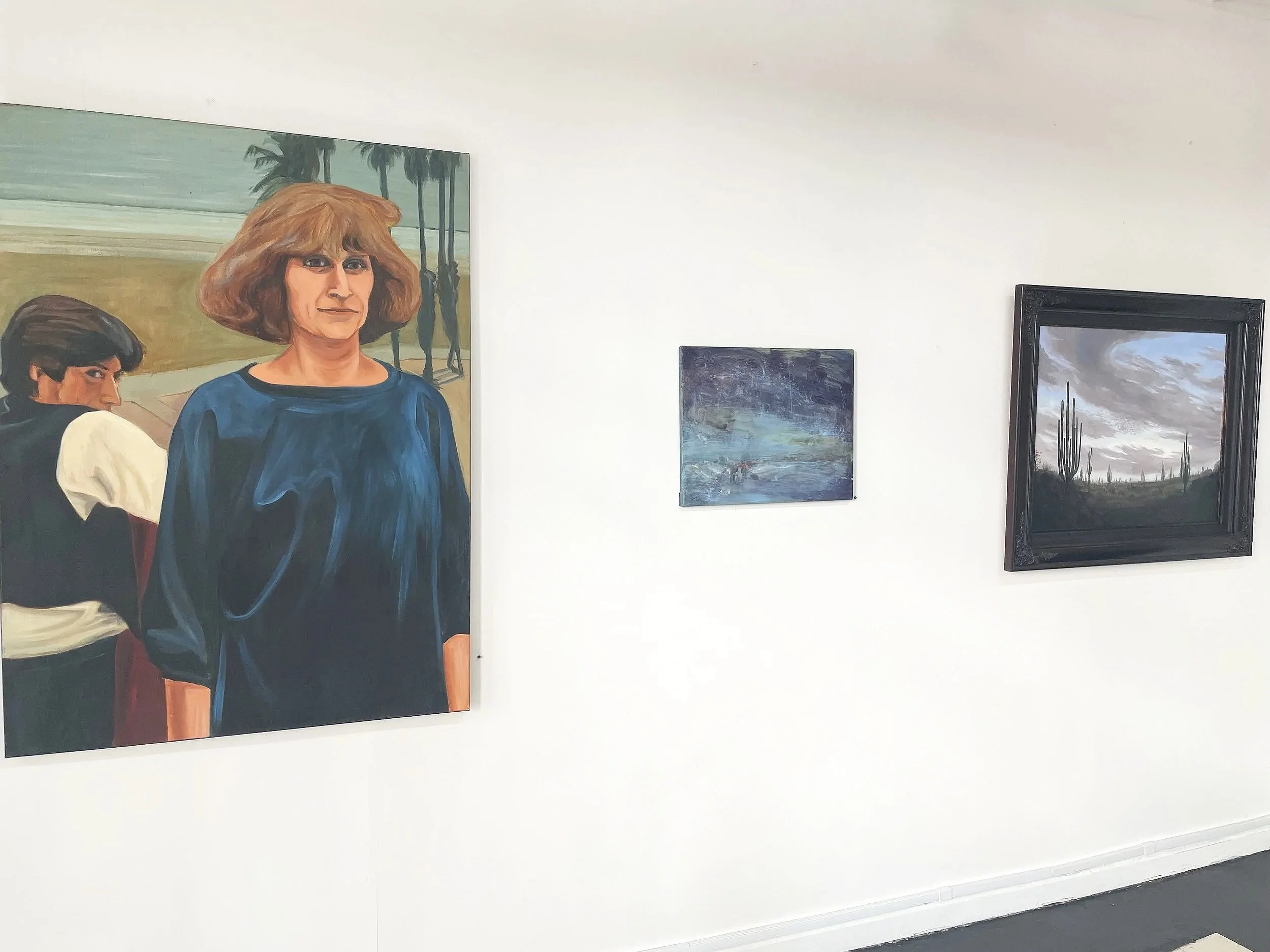 Artwork, left to right : Jo Caldwell Mariposa; Honza Chobolitz Landscape with figures in a storm; Ricardo Montalavan Twilight;